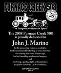 2008: The 2008 Furnace Creek 508 was proudly dedicated to John Marino for his pioneering vision as an athlete, for his unmatched leadership as a race director, for creating this event 25 years ago, for his friendship, wisdom, and support, and for being a guiding light and inspiration to cyclists across the USA and beyond. Full story.